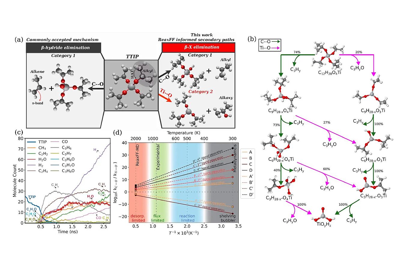 A new study, recently accepted for publication in npj Computational Materials, changes that. By combining computationally intensive quantum mechanics with the efficiency of ReaxFF, and metadynamics, researchers mapped the complete reaction landscape of titanium isopropoxide (TTIP), a common precursor for complex oxide growth. The team revealed hidden steps, potential roadblocks, and byproduct pathways, transforming MO precursor chemistry into a more predictable and controllable process.